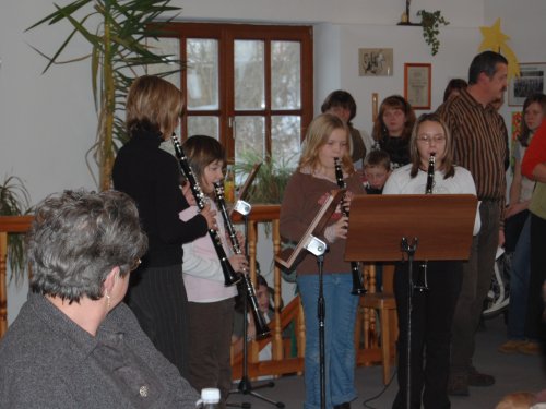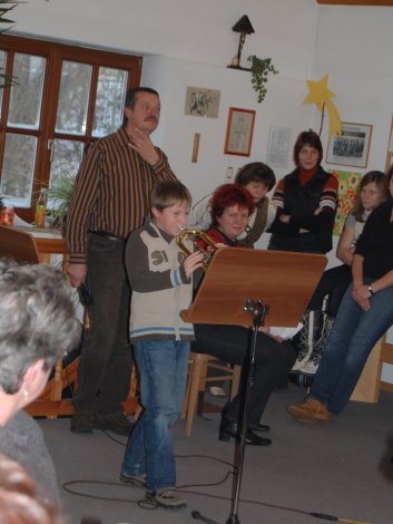 Unterstützt durch Monika Keferböck spielten die jüngsten ihre Weihnachtslieder. |