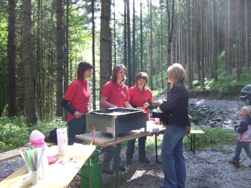 ![]() Bei der 1. Station: Unsere 3 Damen am Grill im Gespräch mit Fr. Christa Hochpöchler von der "NÖN" v.l.: Irene Danner, Alexandra Schagerl, Julia Käfer. Für kühle Getränke sorgten Anton Käfer und Karl Berger |