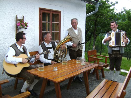 ![]() Bei der 2.Station "Riegler" (Trojek) sorgten die Ybbsitzer Musikanten für musikalische Klänge. v.l.n.r.: Franz Kerschbaumer, Franz Fuchsluger, Gottfried Kloimwieder und Sepp Ritzinger. |