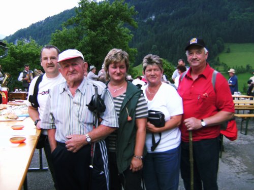 ![]() Einer der ältesten Teilnehmer: Johann Kern (2. v.l.) mit Fam. Bernhart und Fam. Wickl |