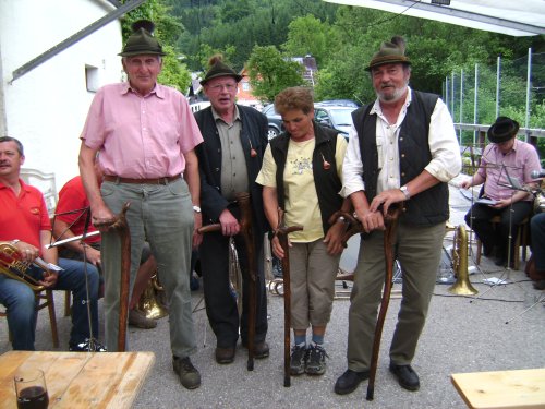 ![]() Fast bei jedem Wandertag anzutreffen: Die original Königsberger Hagelsteckenpartie aus Hollenstein v.l.n.r.: Leopold Schnabel, Alfred Haidler, Helga Schnabel, Siegfried Schneiber |