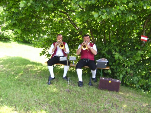 Bei dieser Station sorgte das Flügelhornduo Kpm. Josef Heigl und Kpmstv. Manfred Krenn für musikalische Klänge |