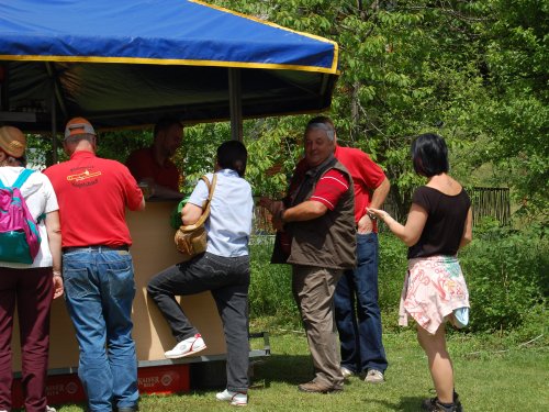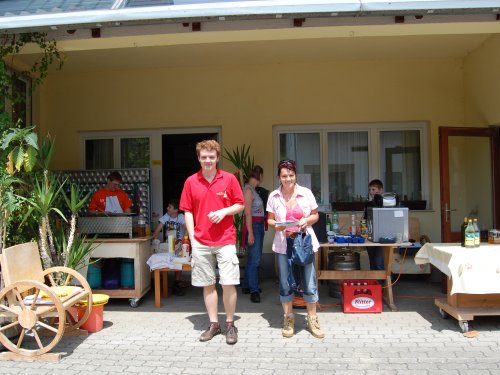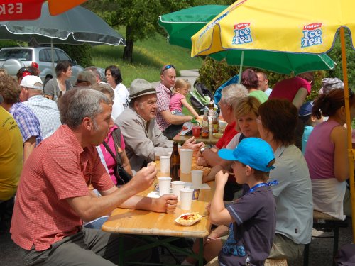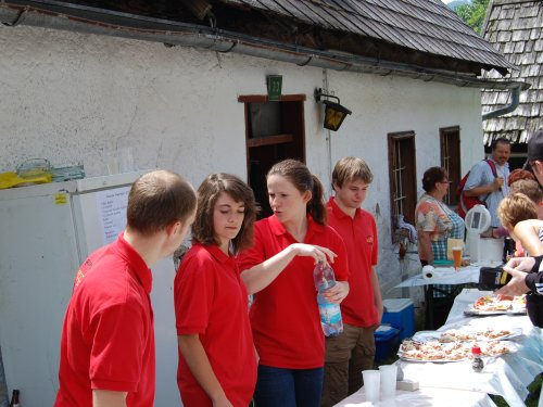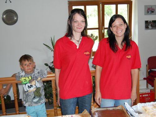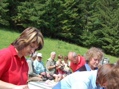 Manfred Kern, Lisa Puchner, Karoline Schagerl und Thomas Käfer versorgten hier die Wanderer. Maria Dippelreither und Gerti Lengauer sorgten für frischgebackene "Schifftln" |