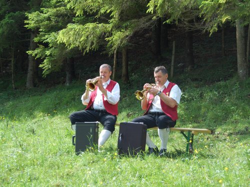 Bei dieser Station sorgte das Flügelhornduo Kpm. Josef Heigl und Kpmstv. Manfred Krenn für musikalische Klänge |