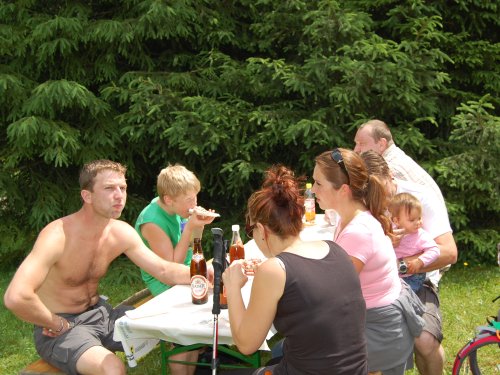 Unsere Damen vom Start- Susanne und Franziska Heigl, Monika Keferböck bei der wohlverdienten Mittagspause. |