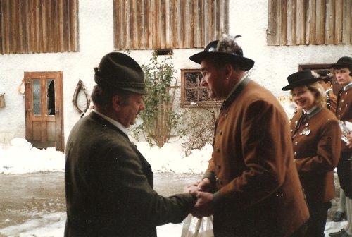 ![]() Obmann-Stellvertreter Hubert Schagerl gratuliert Obmann Franz Puchner zum 50. Geburtstag (November 1988) |