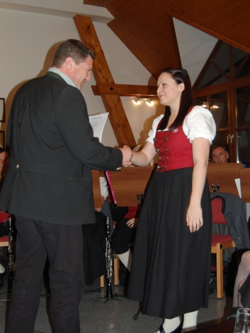 Die Ehrenmedaille in Bronze für 15 Jahre aktiver MusikerInn erhielten: Irene Wickl,
