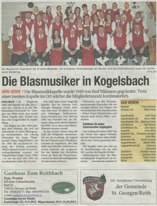 Die Blasmusik Kogelsbach wurde in der Woche 33 vorgestellt: