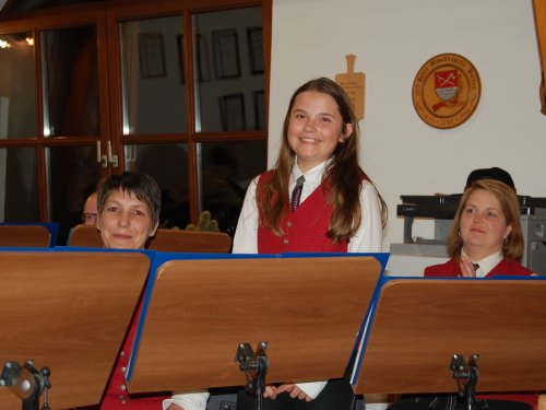 v.l.: Kapellmeister Manfred Krenn, Julia Käfer, Bez.Stabführer Peter Steinbichler,